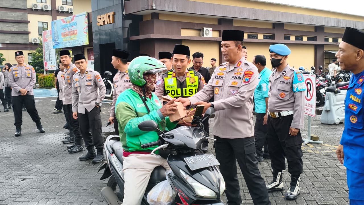 Humanis untuk Masyarakat, Wakapolresta Sidoarjo dan Pejabat Utama Bagikan Ratusan Takjil di Dalam Mako