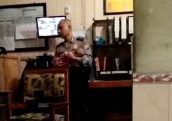 Polisi Wonoayu Gendong Bayi di Saat Ibunya Bikin Laporan