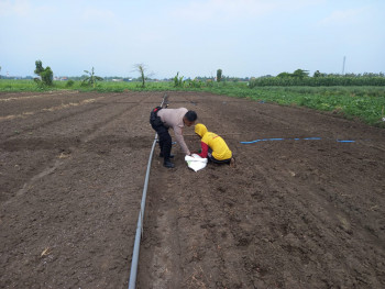 Kanit Binmas Polsek Krembung Tinjau Ketahanan Pangan di Tanaman Bawang Merah Desa Lemujut